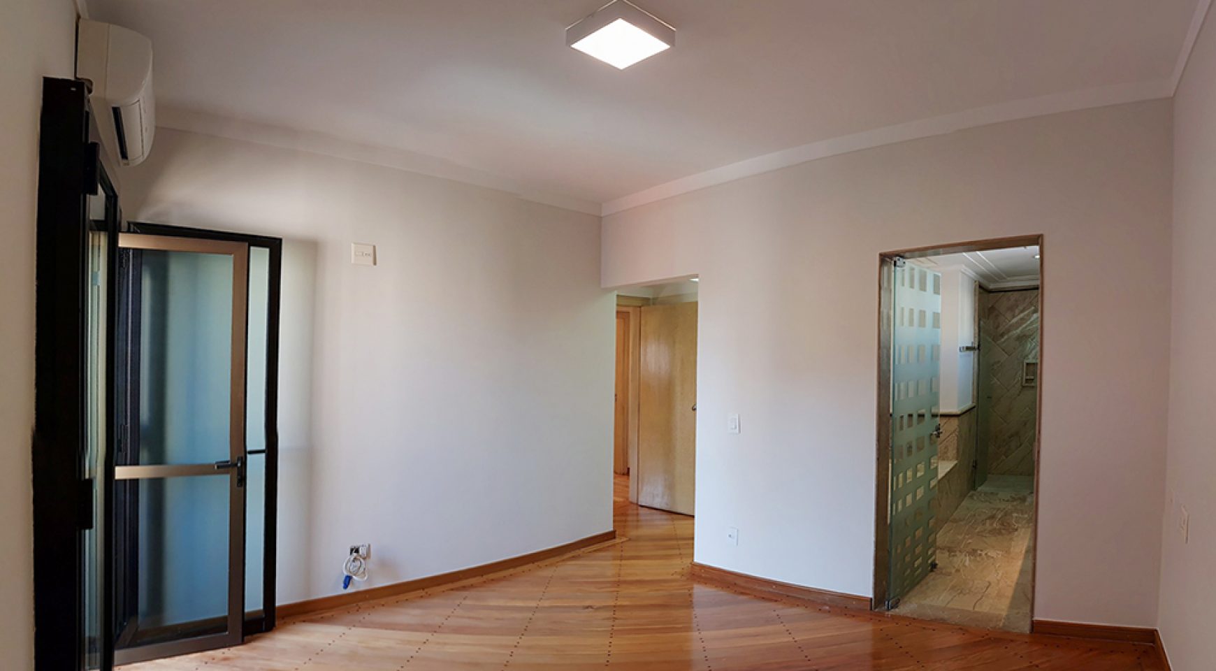 Isolamento acústico, ar-condicionado, sacada grande e com ótima vista do centro da nossa cidade.